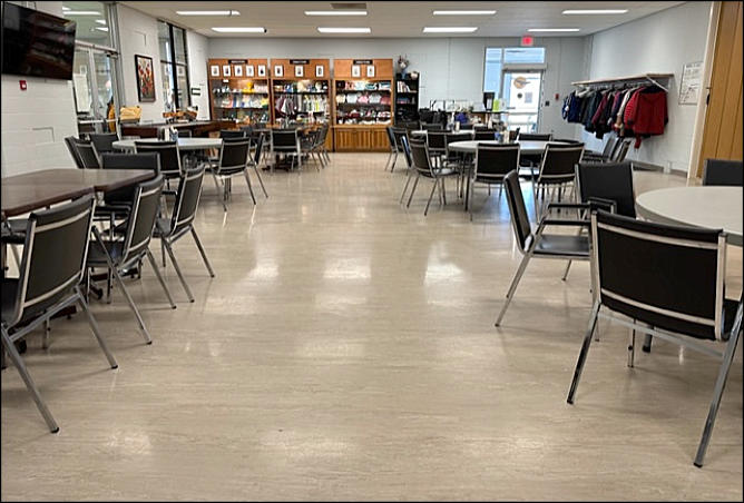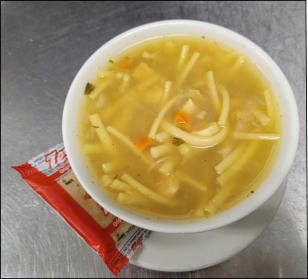 Also available are pop, coffee, tea, juice, hot chocolate, chips, Cheezies