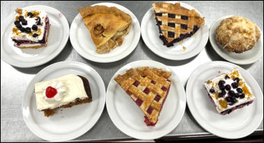 Dessert favourites include muffins, pies, cakes, cheesecake and